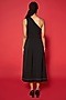 Black Mesh Twill One-Shoulder Midi Dress