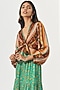 Featuring a green gathered skirt in satin crepe base with print. This contains only one piece.