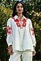 Featuring an ivory shirt in cotton base with pearl cutwork embroidery. It is paired with straight pants. Accentuate it with statement earrings and heels for an evening look.