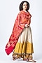 Featuring an ivory and mustard anarkali in chanderi base with embroidery. It is paired with matching organza pants and a dupatta having bandhani and sequins embroidery.