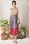 Featuring a multi colored maxi dress in viscose georgette base with floral print. It is sleeveless.