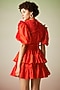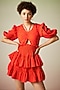 Featuring a red ruched mini dress in polyester base with frills.