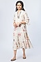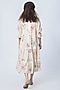 Featuring a white midi dress in viscose georgette base with ditsy floral print. It has schifili zari butti work and 3/4th sleeves.