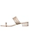 Featuring a pair of beige 1.5 inch block heel kolhapuris in PU base with gold gota work embroidery.