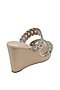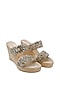 Featuring a pair of gold sandals in raw silk base with mirror embellishments. It has 4 inch heels.