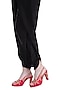 Featuring a pair of red sling back sandals in PU base with golden zardozi embroidery and 4 inch heels. It has a suede underlining.