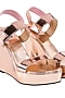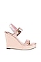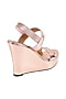 Featuring a pair of rose gold wedges in a polyurethane base with glossy mirror-finished metallic straps and a slingback. It has suede underlining and a 4.0-inch heel.