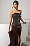 Featuring a brown corset in armani satin base with sequins and cutdana work. It is paired with a draped skirt and a detachable cape. Style it with statement jewellery, block heels and an embellished clutch for cocktail soirees or sangeet ceremonies.