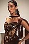 Featuring a chocolate brown corset in mesh and imported semi stretch fabric base with mirror embroidery. It is paired with a skirt and a choker dupatta. Style it with statement jewellery, block heels and an embellished clutch for cocktail soirees.