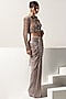 Metallic Brown Metallic Lycra & Sequins Draped Skirt Set