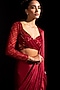 Featuring a red ready-to-wear saree in armani satin base. It is paired with an embroidered blouse. Style it with statement jewellery, block heels and an embellished clutch for sangeet ceremonies or weddings.