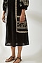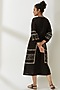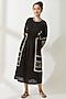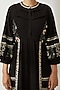 Featuring a black dress in crinkled cotton base with floral and geometric embroidery. It has a collar and raglan sleeves.