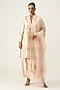 Featuring a pearl pink kurta in chanderi base with hand embroidery. It is paired with pants and a dupatta. Accentuate it with statement jhumkas, juttis, and a sleek clutch for an elegant look, perfect for festive celebrations, weddings, or family gatherings.