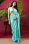 Aqua Blue Chinon Digital Printed Draped Saree Set