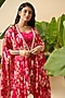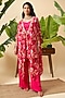 Featuring a fuchsia kaftan style jacket in chinon base with floral print, sequins embellishment and tie-up detail. It is paired with a silk bustier having mirror detail and wide-leg pants. Accentuate it with hoop earrings and strappy sandals for a vibrant, relaxed look, perfect for mehendi functions, resort getaways and casual festive gatherings.