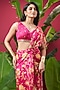 Featuring a hot pink draped saree in chinon base with floral embroidery and print. It is paired with a ruched blouse having embellishment and tassel detailing. Accentuate it with statement earrings and heels for a chic contemporary vibe, perfect for sangeet ceremony, mehendi functions or festive gatherings.