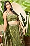 Featuring an olive green choli in bemberg crepe base with floral print. It is paired with a front-pleated skirt and a floral cape. Accentuate it with statement earrings and high heels for a stylish ensemble, ideal for cocktail parties or mehendi celebrations.
