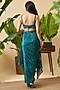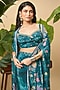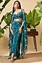 Featuring a teal blue choli in bemberg crepe base with embellishment. It is paired with a side-knot draped skirt and a cape having floral embroidery. Accentuate it with statement earrings and high heels for a stylish ensemble, ideal for cocktail parties or mehendi celebrations.