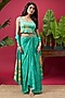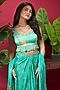 Featuring a turquoise blouse in chinon base with embellishment and frill detailing. It is paired with a pre-stitched draped skirt having floral detailing and a printed dupatta. Accentuate it with statement earrings and strappy sandals for a vibrant look, perfect for haldi celebrations, green mehendi ceremony or daytime festivities.