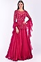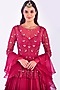 Featuring a rosy red peplum anarkali in chiffon, organza, and net base with cutdana and pearl floral hand embroidery. It is paired with a matching ruffled dupatta.