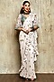 Featuring a beige saree in georgette base with print and frills. It is paired with a contrasting olive green silk blouse having machine embroidery.