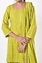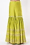 Featuring a lime green short kurta in chanderi silk base with thread and sequins embroidery. It is paired with matching layered sharara pants having gota embroidery and a dupatta.