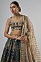 Featuring a navy blue lehenga in new silk base with geometric, sequins and thread embroidery. It is paired with an embroidered blouse and a net dupatta having tassels. Accentuate with statement jewellery and heels for a complete look.