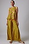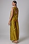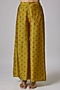 Featuring an olive green top in silk base with boota print, mirror motifs and tassels. It is paired with matching pants.