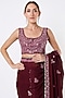 Featuring a wine pant saree in georgette base with machine embroidery. It is paired with a matching silk blouse.