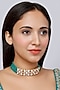 Featuring a gold finish indo-western choker necklace studded with moissanite diamonds and green onyx stones, set in 92.5 sterling silver.