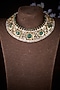 Gold Finish Kundan Polki & Green Fluorite Stone Bridal Necklace In Sterling Silver