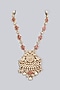 Featuring a gold finish long necklace studded with pink kundan polki motifs, including real pearl gugri and gold ball hangings, set in 92.5 sterling silver.
