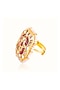 Gold Finish Ruby Stone & Kundan Polki Adjustable Ring In Sterling Silver