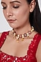 Featuring a gold finish choker necklace studded with kundan polki, shell pearls, topaz drop, and rose quartz stone, set in 92.5 sterling silver.