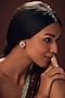 Featuring a pair of 22kt gold plated stud earrings studded with mozonite polki and carved tourmaline, set in 92.5 sterling silver.
