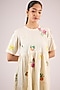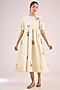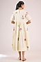 Featuring an ivory floral midi dress in cotton base. Style with delicate jhumkas and strappy heels for a festive gathering or intimate celebration.