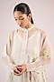 Featuring an ivory floral midi dress in organza base. It is paired with a cotton inner. Style with delicate jhumkas and strappy heels for a festive gathering or intimate celebration.
