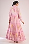 Featuring a pink floral maxi dress in chanderi base. It is paired with an inner. Style with delicate jhumkas and strappy heels for a festive gathering or intimate celebration.