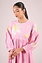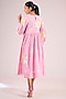 Featuring a pink floral midi dress in cotton base. Style with delicate jhumkas and strappy heels for a festive gathering or intimate celebration.