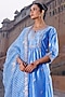 Vinita Bhansali presents a blue kurta in pure silk base with sequins and dori hand embroidery. It is paired with pants and a pure silk organza leheriya dupatta. Style this kurta with traditional juttis and a matching potli bag for a timeless festive look,