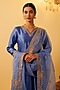 Vinita Bhansali presents a blue kurta in pure silk base with marodi and dori hand embroidery. It is paired with pants and a pure silk organza leheriya dupatta. Style this kurta with traditional juttis and a matching potli bag for a timeless festive look,