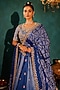 Vinita Bhansali presents a blue lehenga in pure silk base with dori, mirror, thread, sequins, gota-patti and floral hand embroidery. It is paired with a blouse and a pure bandhani gajji silk dupatta. Style this lehenga with delicate diamond jewelry and embellished heels for an elegant wedding look.