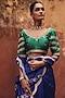 Featuring a blue saree in pure silk base with dori, marodi, sequins, zardosi and pearl hand embroidery. It is paired with a green blouse. Accentuate it with jewellery, a sleek clutch and heels for a graceful look. Perfect for special celebrations, wedding or festive ceremony.