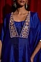 Featuring a blue cape in silk base with dori, marodi, sequins, mukaish and zardosi hand embroidery. It is paired with sharara pants and a blouse. Accentuate it with jewellery, a sleek clutch and heels for a graceful look. Perfect for special celebrations, wedding or festive ceremony.