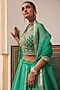 Featuring a green lehenga in pure silk base with dori, marodi, sequins, zardosi, mukaish and gota patti hand embroidery. It is paired with a blouse and pure silk organza dupatta. Accentuate it with jewellery, a sleek clutch and heels for a graceful look. Perfect for special celebrations, wedding or festive ceremony.