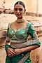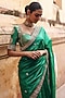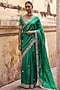 Featuring a green saree in pure silk base with dori, marodi, sequins, zardosi, mukaish and pearl hand embroidery. It is paired with a blouse. Accentuate it with jewellery, a sleek clutch and heels for a graceful look. Perfect for special celebrations, wedding or festive ceremony.