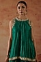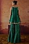 Featuring a green top in pure silk base with dori, marodi, sequins and zardosi hand embroidery. It is paired with pants. Accentuate it with jewellery, a sleek clutch and heels for a graceful look. Perfect for special celebrations, wedding or festive ceremony.