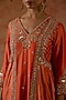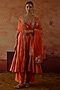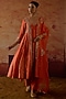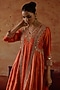 Featuring an orange anarkali in pure silk base with dori, marodi, sequins, zardosi and mukaish hand embroidery. It is paired with pants and a pure silk organza dupatta. Accentuate it with jewellery, a sleek clutch and heels for a graceful look. Perfect for special celebrations, wedding or festive ceremony.