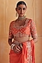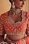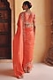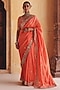 Featuring an orange saree in pure silk base with dori, marodi, sequins, zardosi and mukaish hand embroidery. It is paired with a blouse. Accentuate it with jewellery, a sleek clutch and heels for a graceful look. Perfect for special celebrations, wedding or festive ceremony.