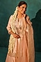 Vinita Bhansali presents a peach kurta in pure silk base with dori, marodi, gota-patti and applique embroidery. It is paired with gharara pants and a pure silk organza dupatta. Style this kurta with traditional juttis and a matching potli bag for a timeless festive look,